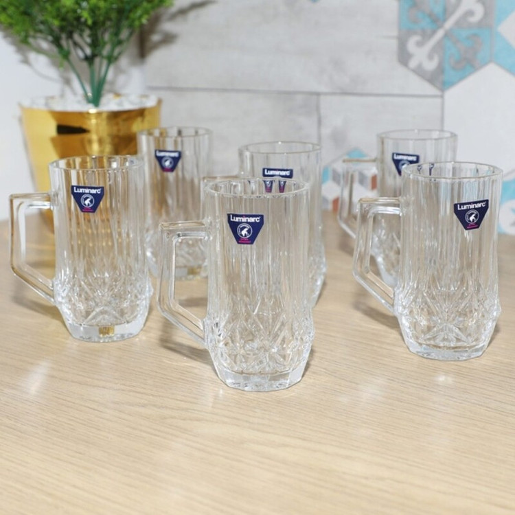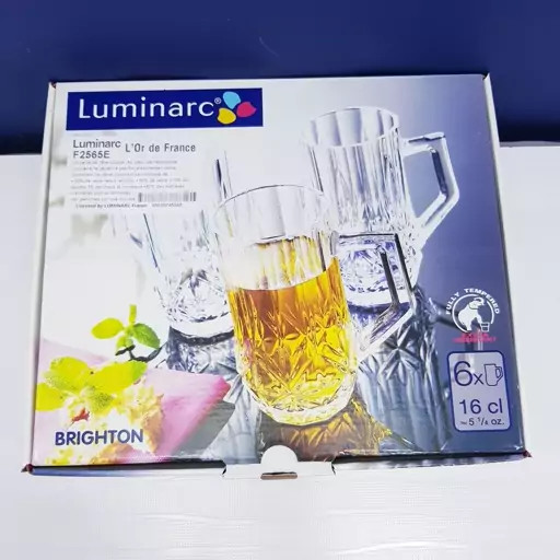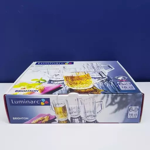 استکان لومینارک مدل برایتون حک شده اصلی دسته دار بسته 6 عددی ساخت امارات مدل گلد فرنس F2565E LUMINARC BRIGHTON