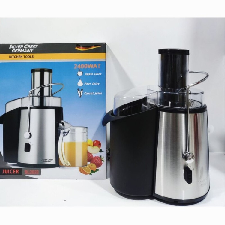 آبمیوه گیری تک کاره سیلورکرست ساخت آلمان مدل SL 2023 توان مصرفی ۲۴۰۰ وات دارای کلید تنطیم دو سرعته دارای پارچ یا مخزن آبمیوه گنجایش پارچ آبمیوه گیر : ۱ لیتر گنجایش مخزن تفاله گیر : ۲ لیتر
