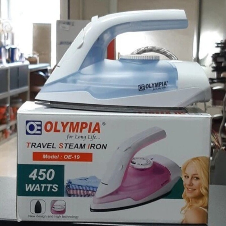 اتو مسافرتی المپیا توان مصرفی 450 وات 💙موجود در رنگ آبی💙 قابلیت بخاردهی تنظیم درجه حرارت دارای مخزن آب طول سیم 140 سانتی متر