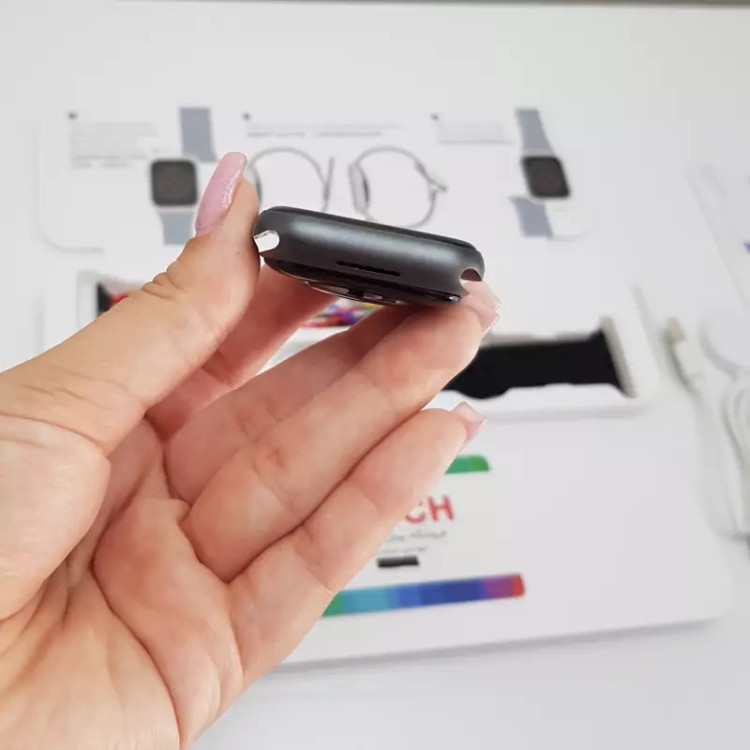 - طراحی جوانپسند و مدرن: این ساعت با ابعاد 11.38.44 میلیمتر و وزن 45 گرم، بسیار سبک و راحت است. طراحی مشابه اپل واچ سری 7، این محصول را به یکی از پرطرفدارترین ساعتهای هوشمند تبدیل کرده است.