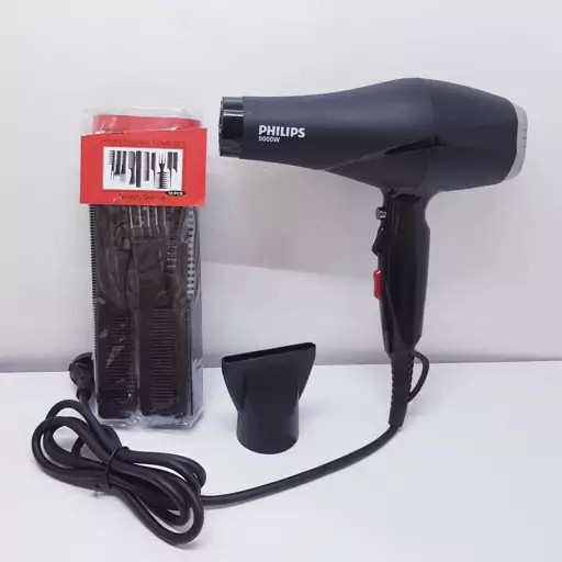 سشوار حرفه ای فیلیپس اصلی هلند حک شده 9000 وات سالنی همراه با 10 عدد شانه مدل 1990