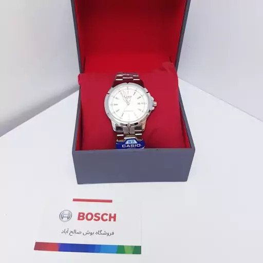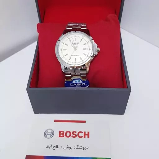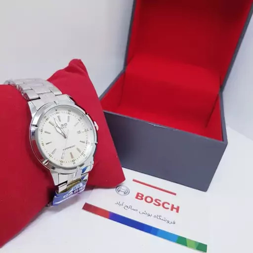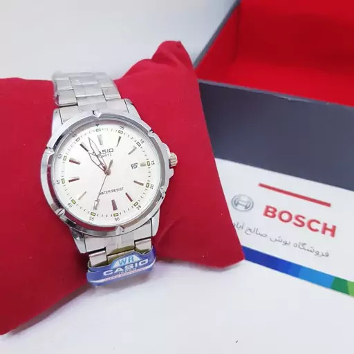 ساعت مچی کاسیو ژاپن صفحه سفید و دسته نقره ای کد 5058 به همراه جعبه و باطری اضافه