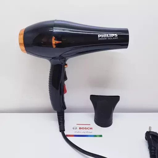 سشوار کراتینه سالنی فیلیپس حک شده اصلی 9000 همراه با 10 عدد شانه و دیسپانسر مدلTORNADO X2