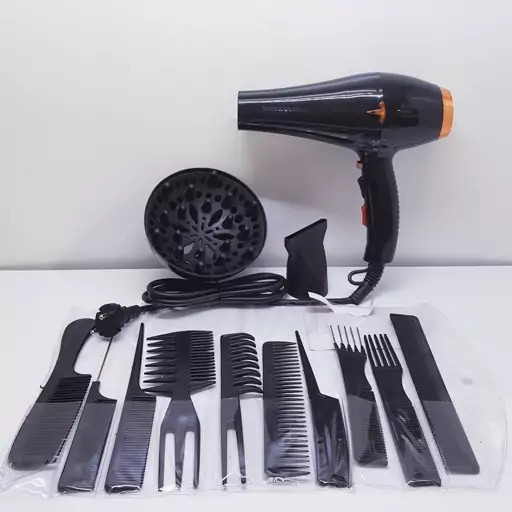 همراه با 10 عدد شانه و دیسپانسر: برای ایجاد مدلهای مختلف و حجمدهی به موهای فر و حالتدار.