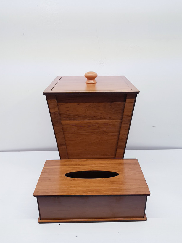 ست چوبی سطل زباله کنار سالن و جعبه دستمال کاغذی برند تایگر وود