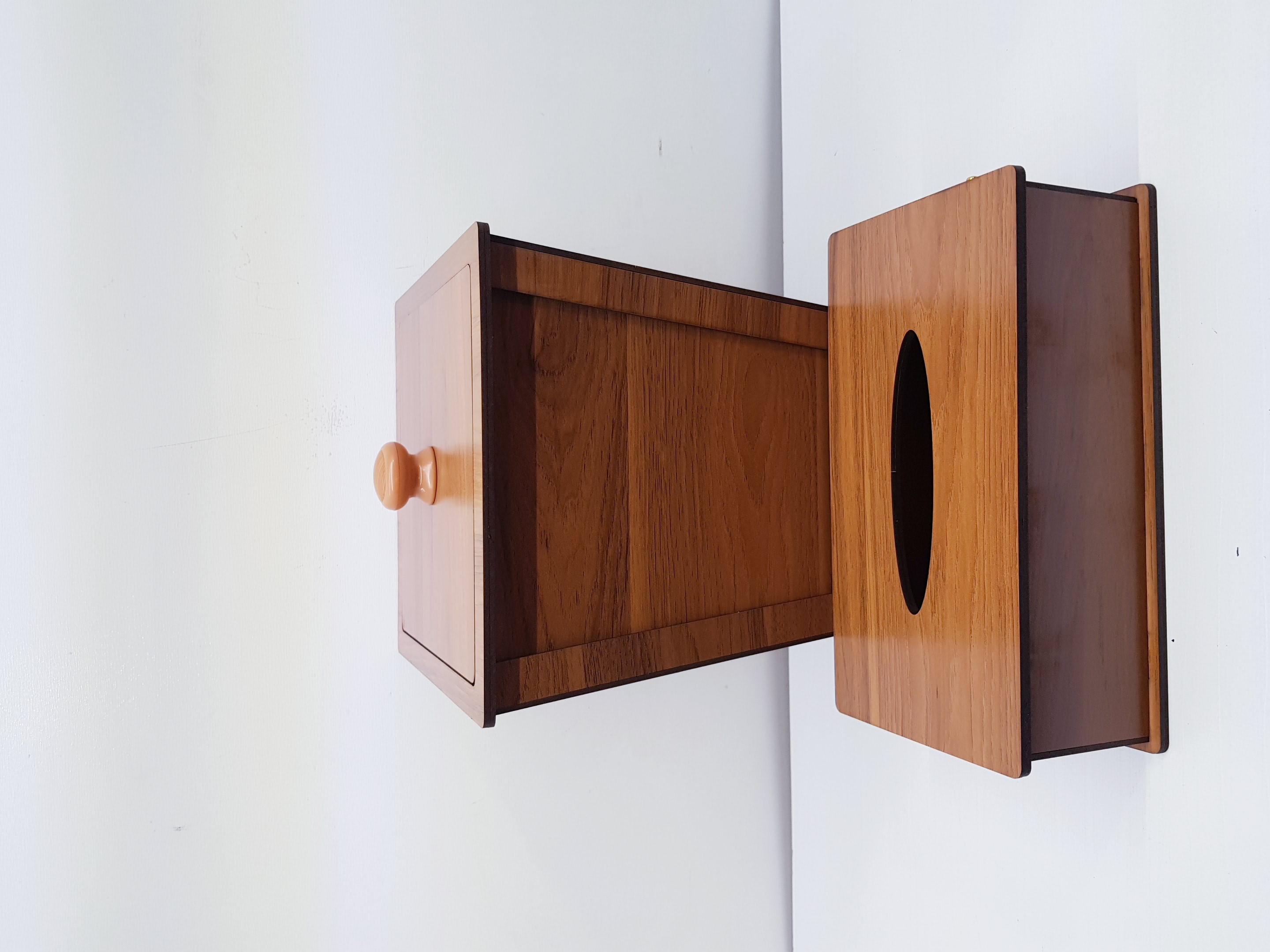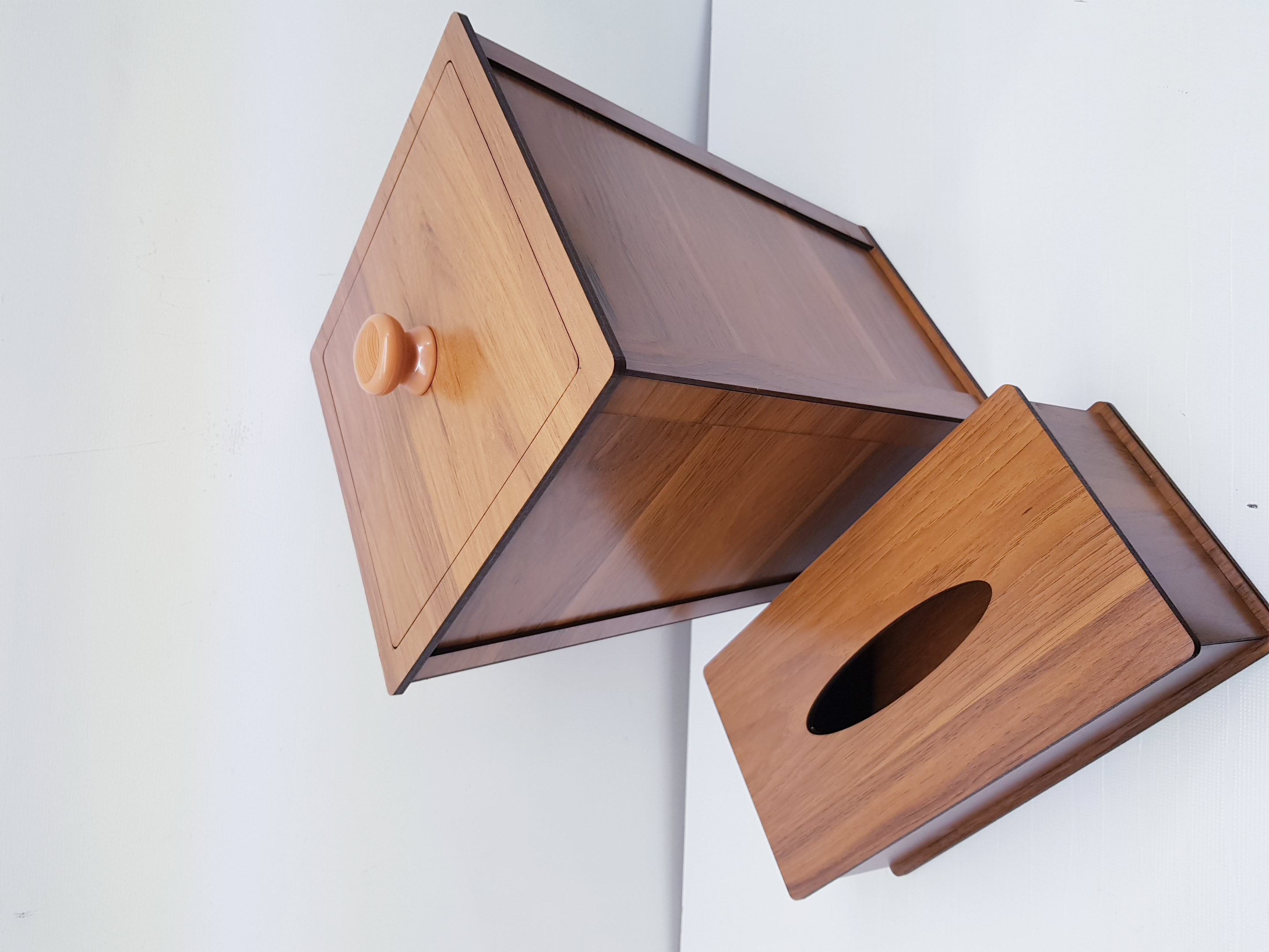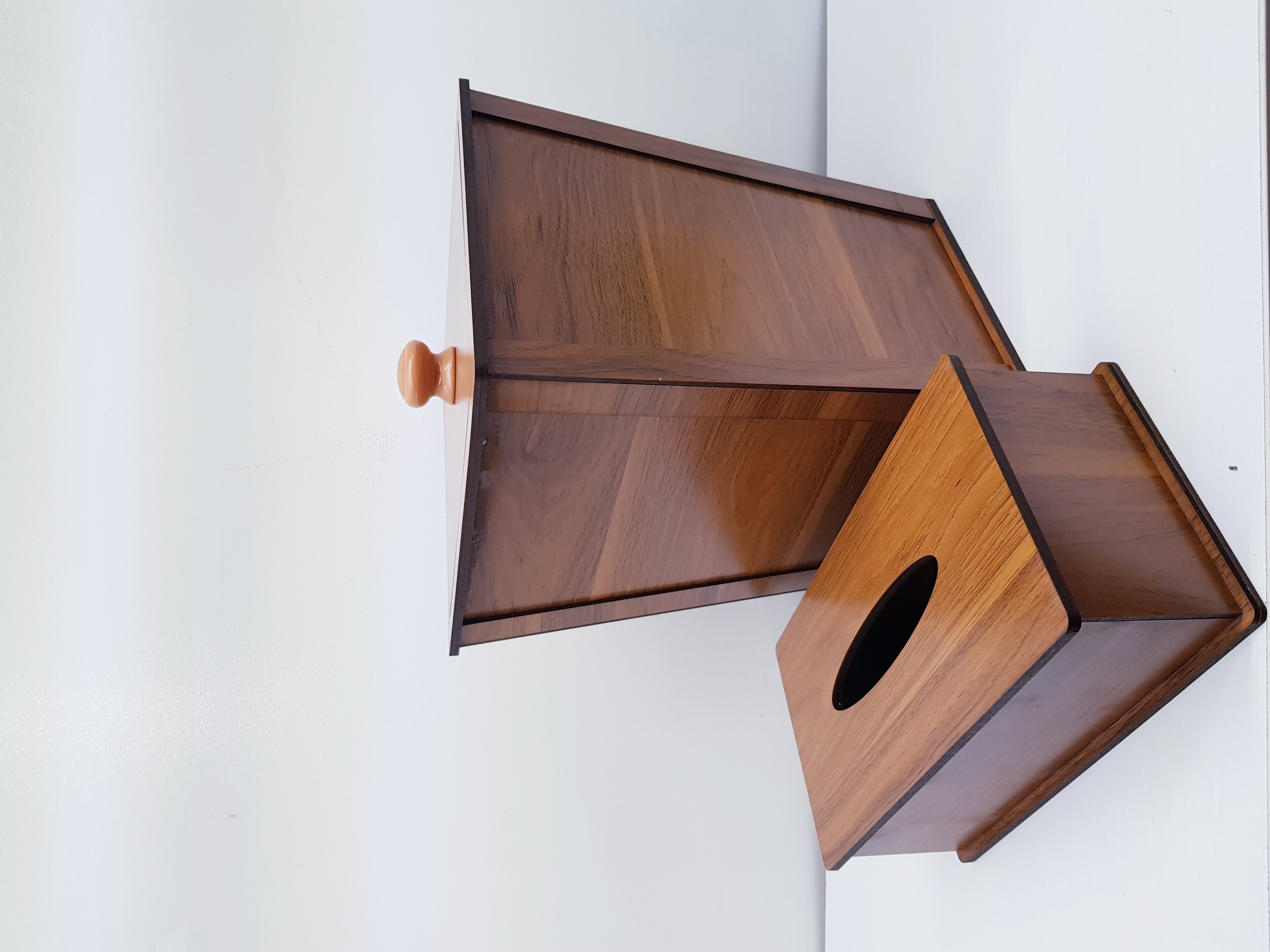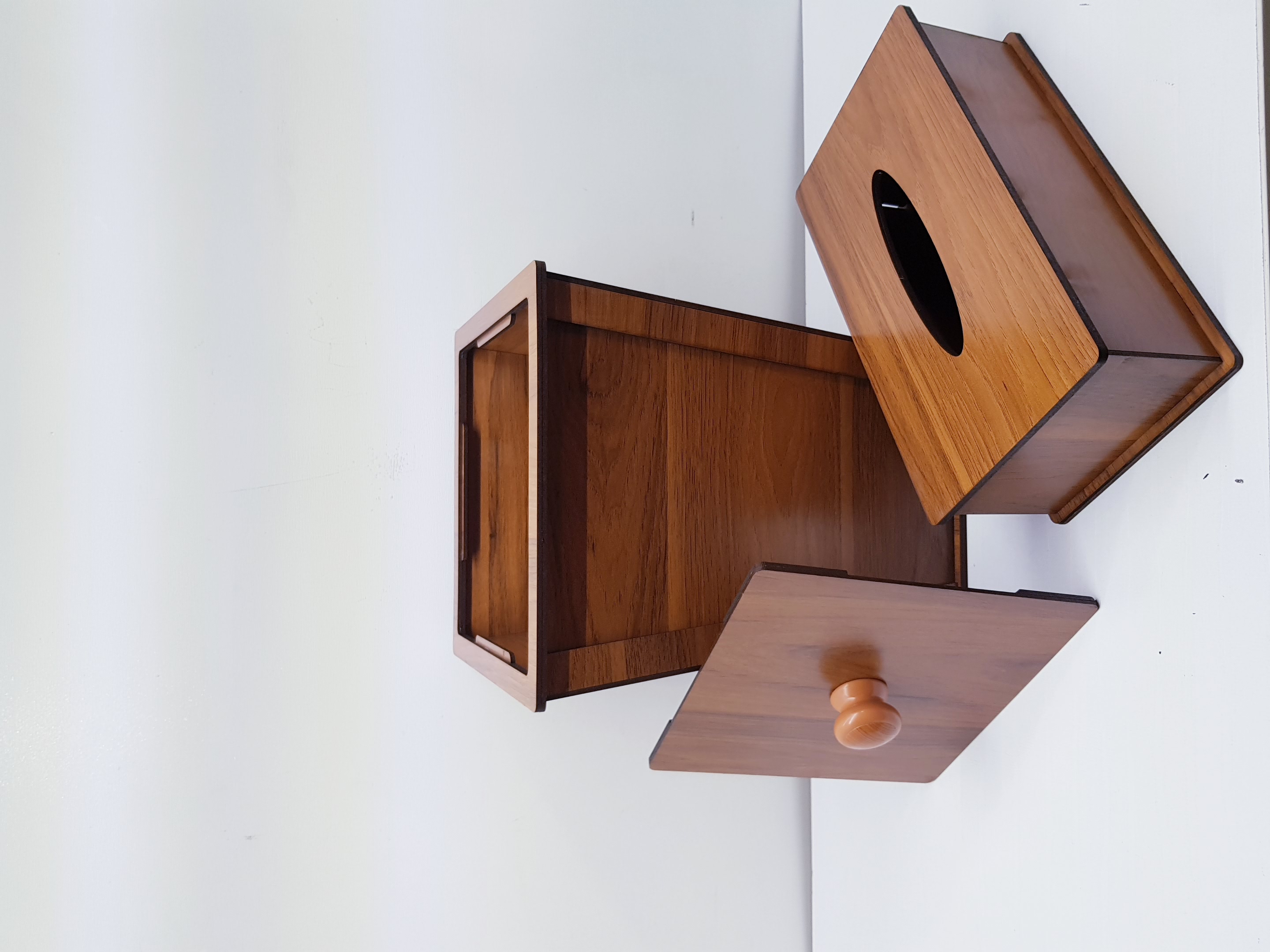 ست چوبی سطل زباله کنار سالن و جعبه دستمال کاغذی برند تایگر وود